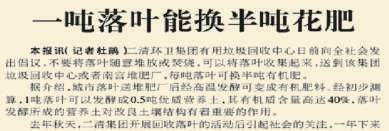 进入新世纪,随着城市建设步伐的加快,北京的绿化面积逐渐增加。只是一到秋冬时节,大部分落叶还是按照垃圾进行填埋处理,这些有机资源并没有得到很好利用。不过,一项“落叶换肥”活动令人们对落叶的认识有所改变。