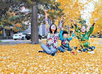 2018年,城区13家公园主动承诺落叶缓扫,受到游客欢迎。这一举措,将11月上中旬就收官的彩叶观赏季延续了近一个月。在著名的地坛银杏大道,市民们踩着金色的落叶,或者是将大捧的落叶高高扬起,留影拍照,成了深秋一景。(2018年10月11日《北京日报》5版,《19处彩叶点承诺落叶晚扫》)