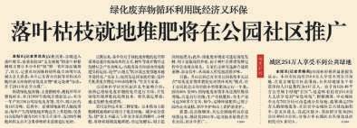 目前,全市园林绿化废弃物已实现100%禁烧:在山区,任落叶自然腐烂、缓慢分解,实现保水保墒的作用;在城市道路和居民区,落叶则被就地粉碎和收运,进行集中处置,开展循环利用。