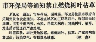 后来,市环保局、环卫局、园林局等部门不但每年联合发布禁止焚烧枯草落叶垃圾的通告,还会公布市、区两级的举报电话,鼓励市民举报违法乱烧落叶者,进一步加大查处力度,保护首都的大气环境。