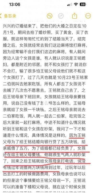 对于王铭来说,媳妇没了可以再找,但是花的那十几万,其中有十万是带着利息的借款。