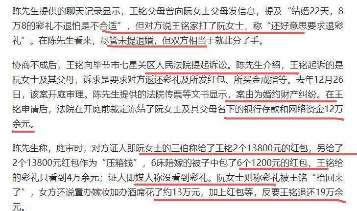 他们矢口否认拿了8.8万彩礼,咬定只收到4万多,而且还拿出说辞,称陪嫁的被子里,每床都包了1200元的红包,按6床被子计算共计7200元,并非文案此前夸大的13000多元。