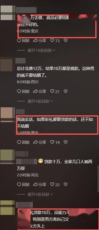 而舆论场上,虽然有部分声音还在纠结“23天是否有家暴”这种细节,但更多的人被这血淋淋的现实刺痛:结婚花费十几万,十万全是借贷。