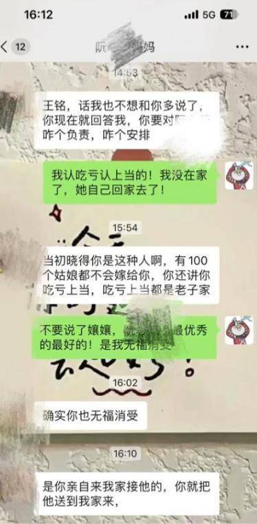2025年6月,王铭通过自家那位既是三伯又是媒人的亲戚牵线岁女子阮女士的微信。