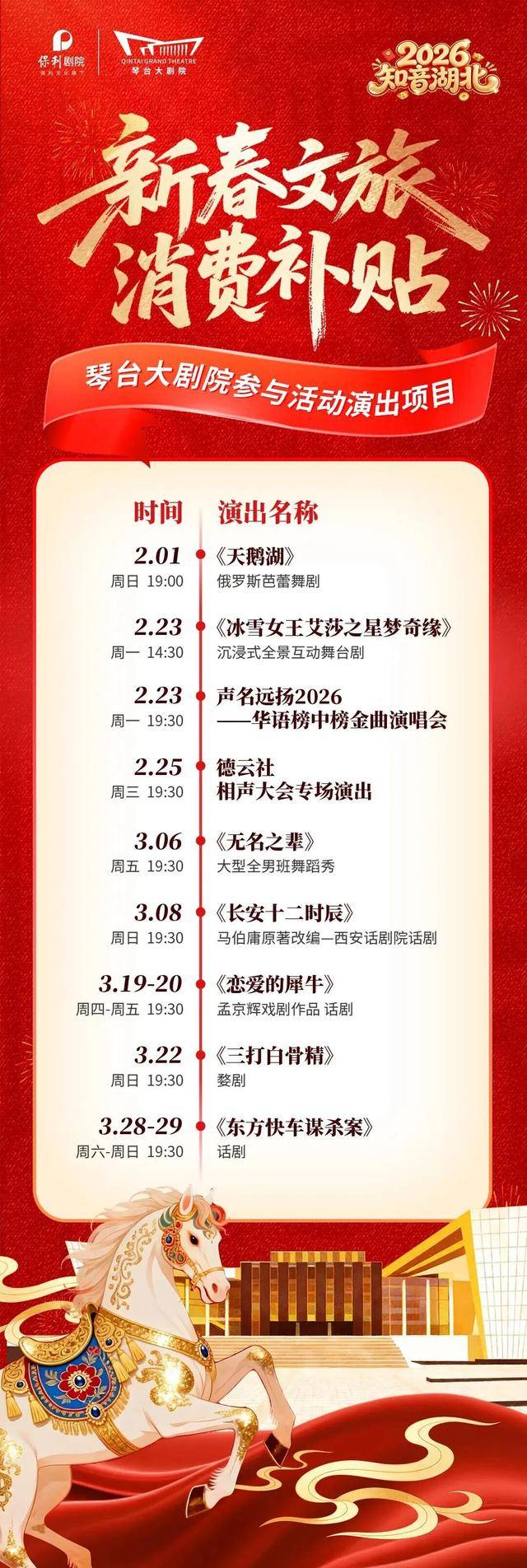 2. 活动动态:多轮消费券发放信息,敬请关注武汉琴台大剧院或湖北文旅官方公众号。