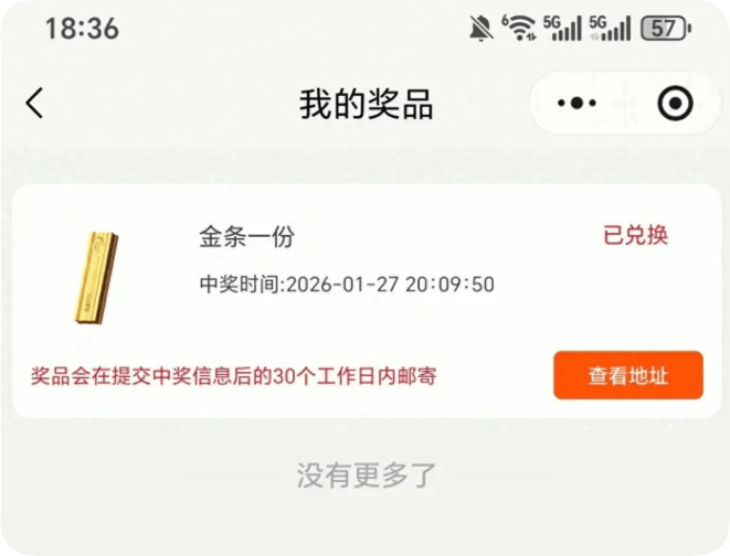 马女士透露,自己中奖后并没有立刻发视频,直到看到其他网友晒出类似经历、热度暴涨后,才于1月28日把自己的经历分享到社交平台,“就是随手拍了一段,没想着能火,结果一夜之间就爆了”。截至目前,她的视频已收获7.4万个点赞、近4万次转发,谈及金条的去向,马女士笑着说:“打算先存着,等金价涨上去就卖掉,和闺蜜平分这笔‘意外之财’。”