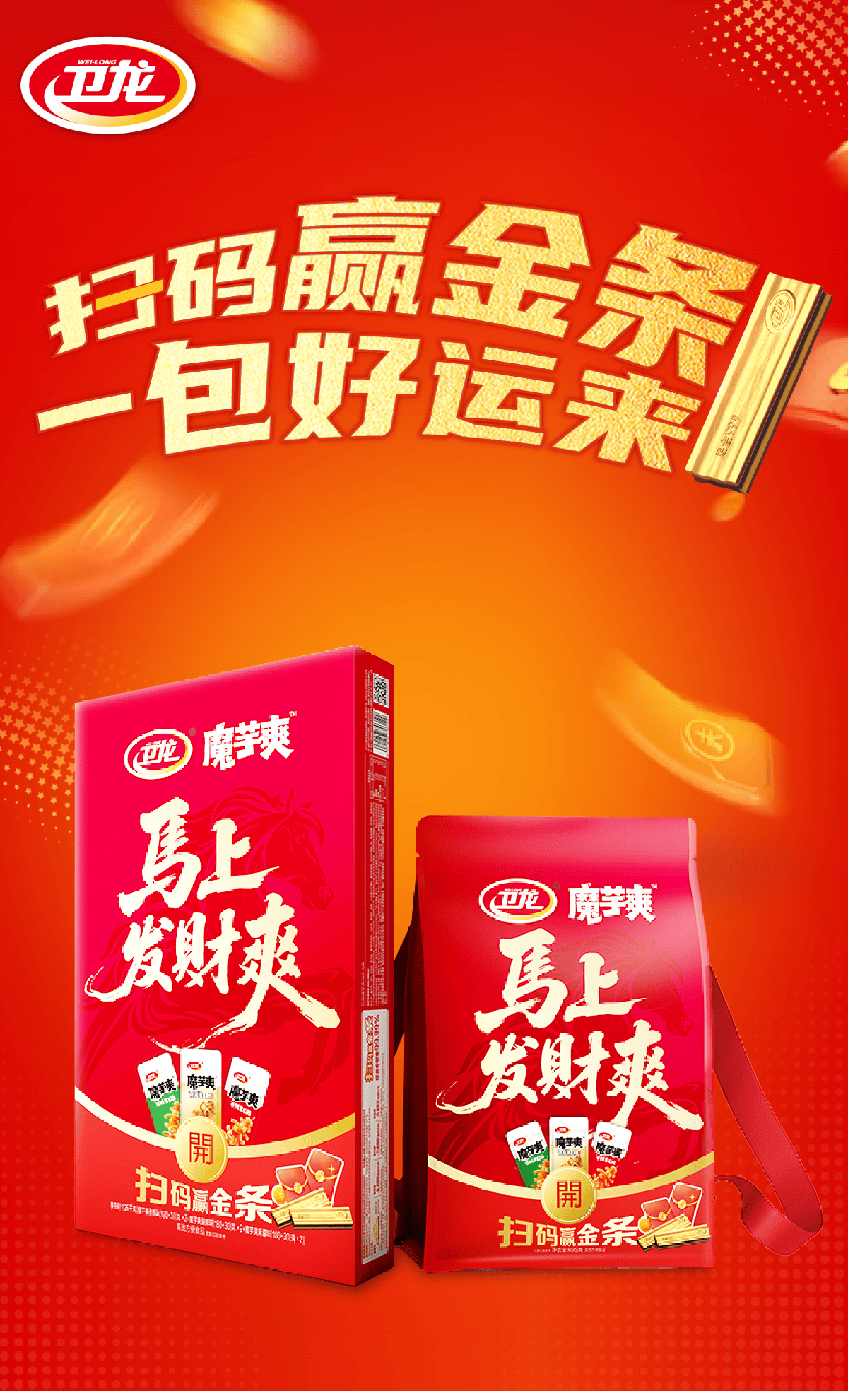 上月底,新疆的赵先生就迎来了自己的“幸运时刻”。他在超市买水果和零食时,顺手拿了一件背包造型的卫龙魔芋爽大礼包,“本来就是随便买的,拆开后发现里面有一张二维码开奖卡,扫完之后直接弹出‘中了3克金条’,标注价值3000元,我当时都不敢相信自己的眼睛”。